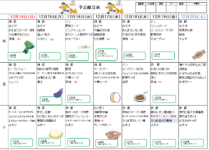 来週(12/14~20)の献立は・・・