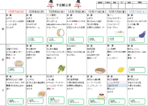 来週(12/7~13)の献立は・・・