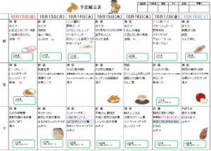 来週(10/12~10/18)の献立は・・・