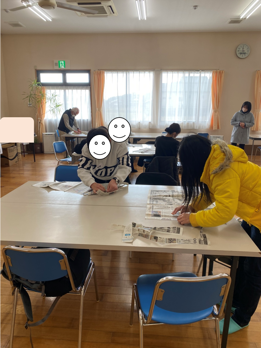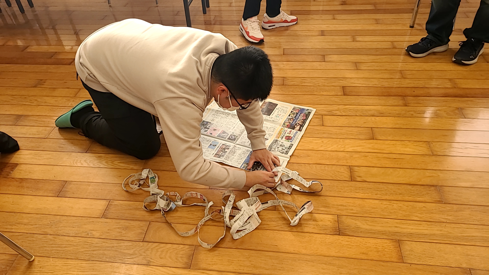 1枚の新聞紙を切れないように長く裂いていくゲームです📰