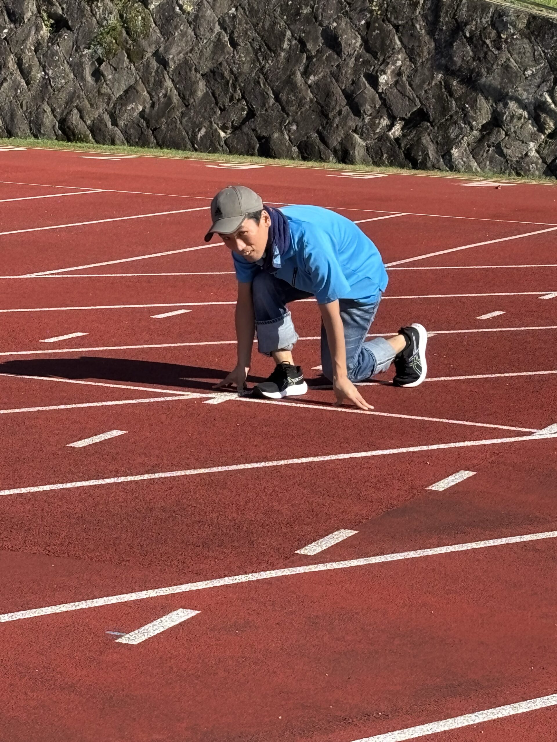 50メートル走、100メートル走出場予定。よーい、どん。 |